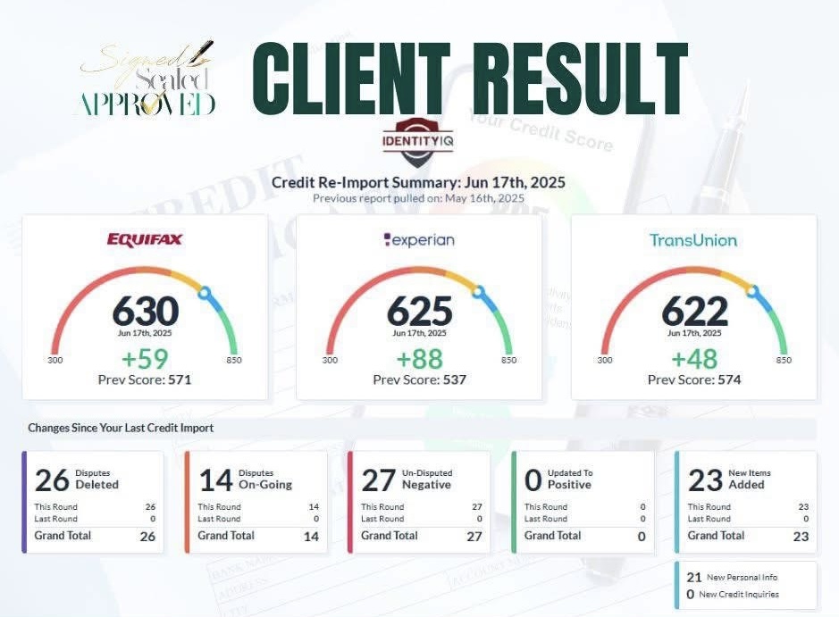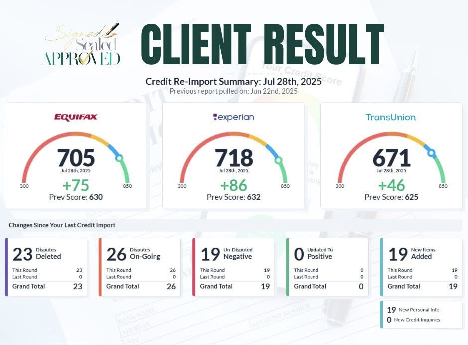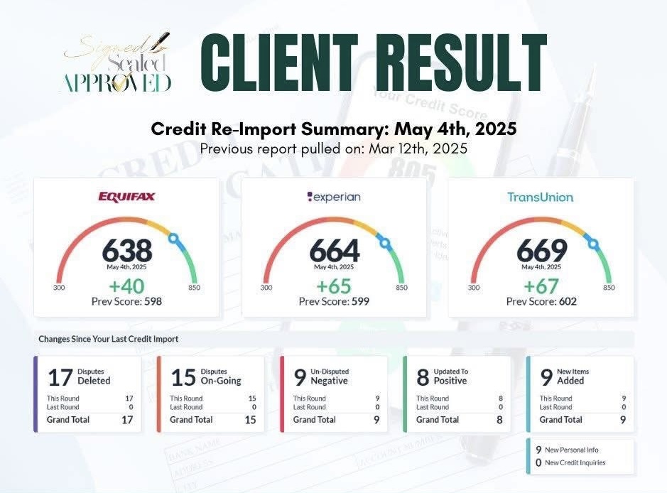 Signed Sealed Approved, LLC is not a credit repair organization as defined under federal or state law. We provide financial education, coaching, and consulting services to help clients optimize financing opportunities. No guarantee of credit score increase or removal of accurate items.